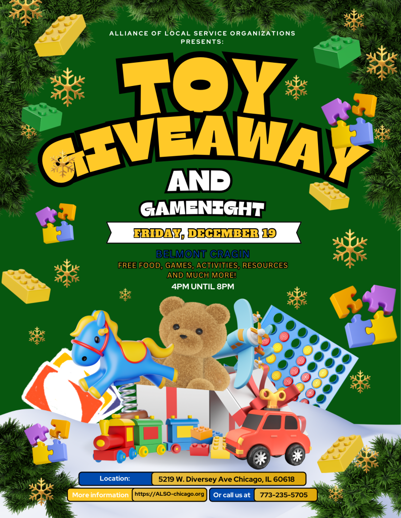 Join us in WEST Humboldt Park for a free Toy Giveaway / Game Night! Community will come together to enjoy free refreshments, games, activities, resources and more!